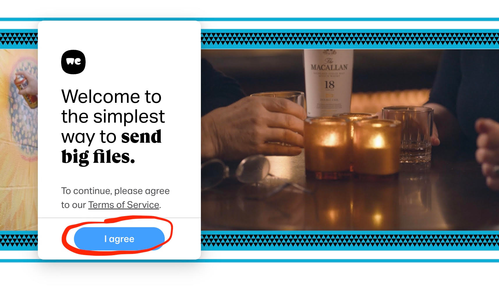 Once on the wetransfer.com site, Accept User Agreement on the left if opening for the first time.