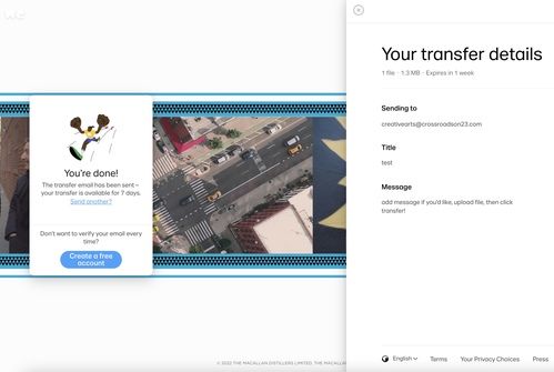 You will receive a confirmation email from WeTransfer as verification it was sent correctly.