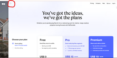 If the page opens to pricing, click the 'x' in the top left corner to go to the transfer page.